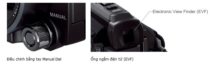 Ghi hình chính xác thật dễ dàngTạo nên những thước phim hoàn hảo với chức năng điều chỉnh bằng tay Manual Dial, chức năng này cho phép bạn điều chỉnh lấy nét, bù trừ sáng, cân bằng trắng, khẩu độ và tốc độ màn chập. Ống ngắm điện tử cho bạn xem hình ảnh chính xác và rõ nét. |